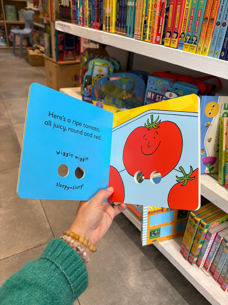 Enjoy and encourage imaginative play with your baby in this adorable and hilarious finger wiggle book!Poke your fingers through the holes of this light-hearted lunchtime board book to bring a charming cast of characters to life and make your picnic a whole lot more fun! From a tasty egg sandwich on crusty brown bread to a juicy round tomato; from a perfectly ripe pear to a chunky slice of cheese, share this delicious selection and enjoy reading together with your own little nibbler. Bright, high contrast illustrations and finger holes to explore, make this book the perfect start to a lifelong love of books.