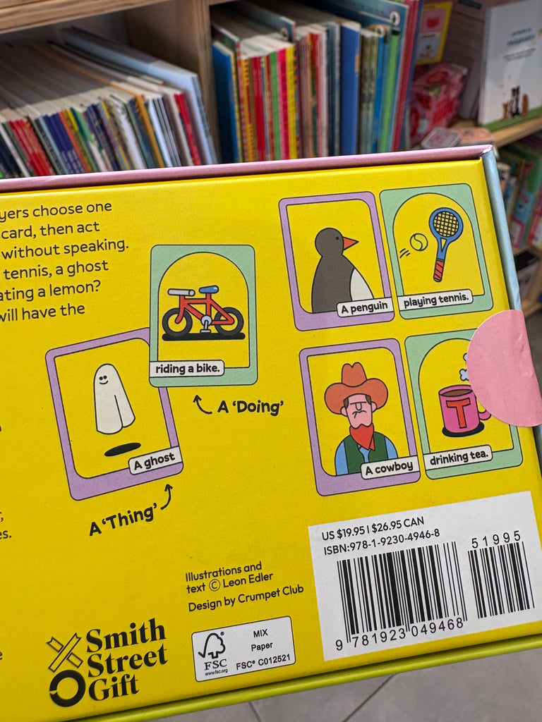 Get the whole family involved with this active, charade-type game that will have everyone laughing! The game play is simple – players choose two cards, one “Thing” card and one “Doing” card, to determine what they must act out without speaking. Will it be a mermaid playing tennis, a ghost eating a yoghurt, or a monkey eating a lemon – the combinations are endless! Players can make sounds but no words are allowed. The player who correctly guesses the answer wins the cards.