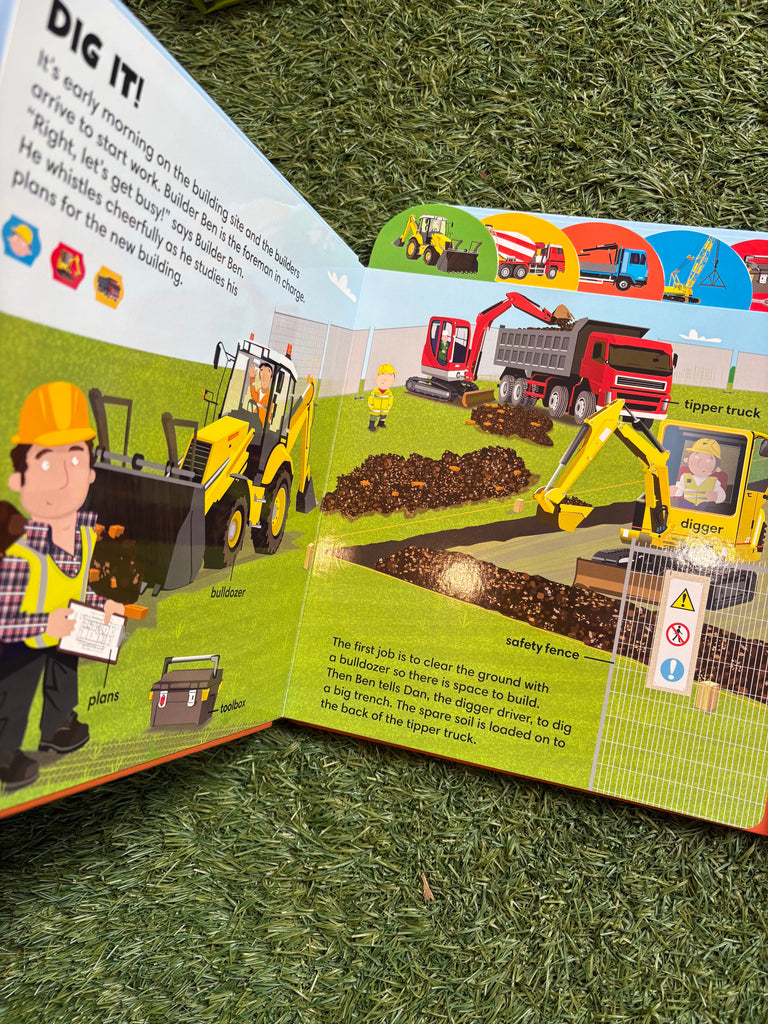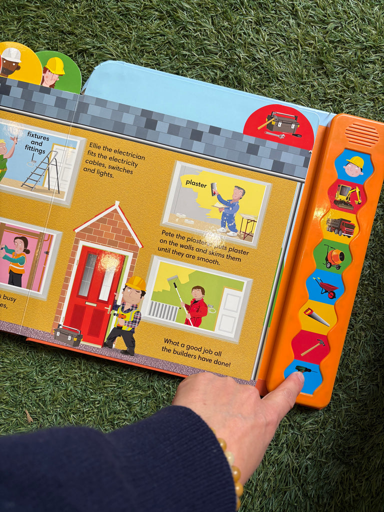 Informative and factual, perfect for all children who love digging and building! Join in with the builders using the eight different sounds, including a whistling builder, drill, hammer, cement mixer, digger, reversing lorry, saw and squeaky wheel barrow!