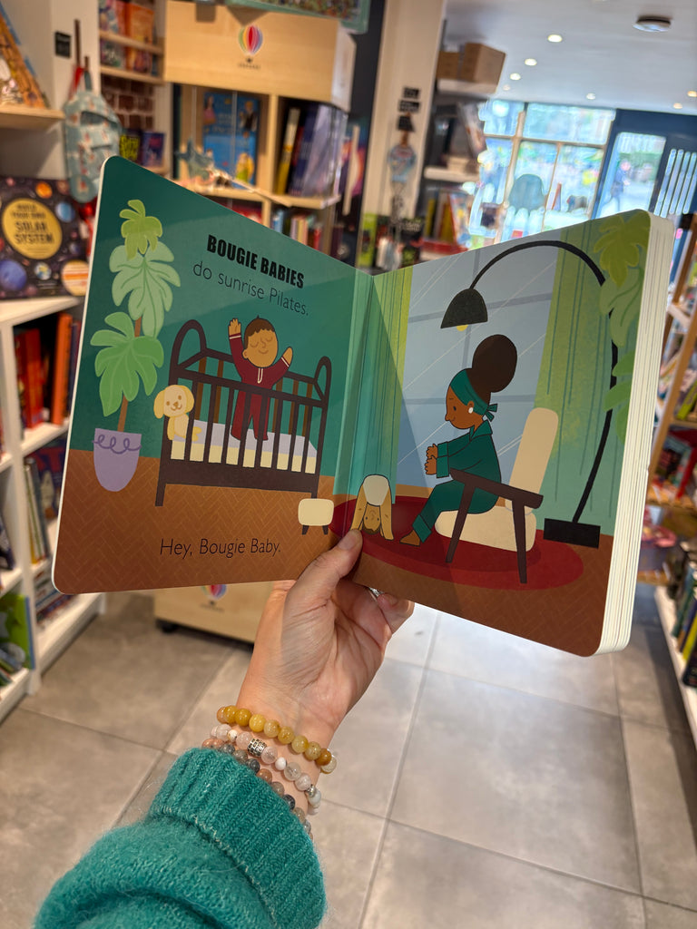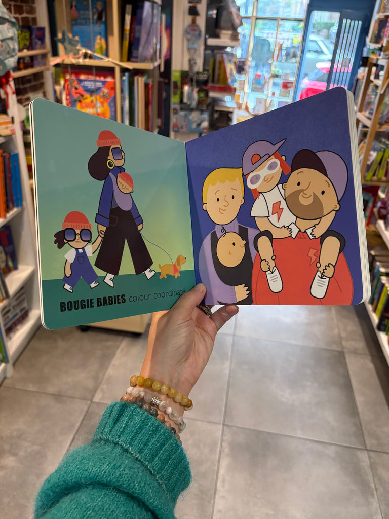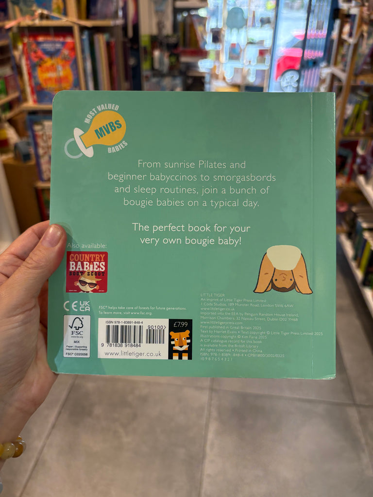 Bougie Babies colour coordinate, shop vintage and do sunrise yoga. Hey, Bougie Baby! From baby's beginner babyccino and first foray to the farmer's market, there are plenty of ways for parents to share their passions with their little ones. The first book in this new series of trend-focused, tongue-in-cheek board books celebrates an inclusive cast of families, following a day in their lives before ending with a sweet bedtime message.
