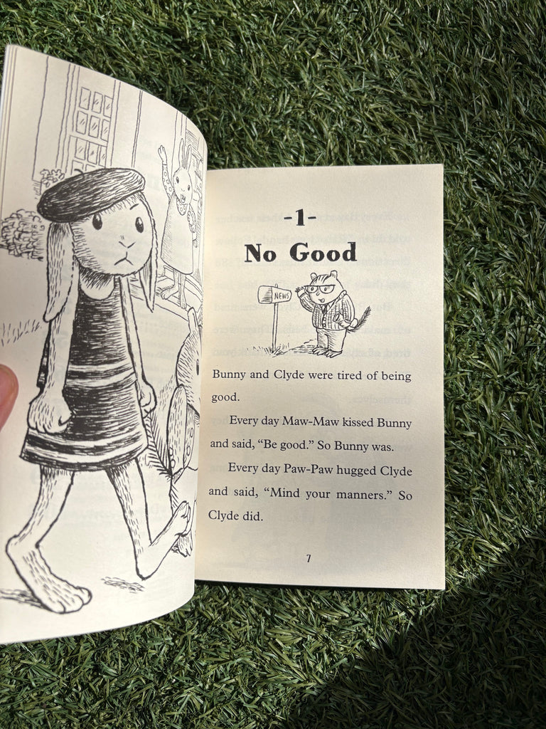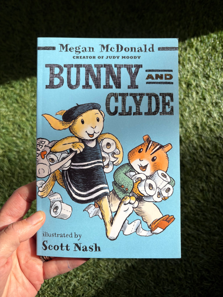 Megan McDonald and Scott Nash. From New York Times best-selling author Megan McDonald, creator of Judy Moody, and lauded illustrator Scott Nash comes a droll comedy for early readers about an endearingly inept pair of outlaws. Get ready for a wild ride with Bunny and Clyde! These by-the-rules buddies, a rabbit and a chipmunk, are sick and tired of being good. For once, they want to know what it’s like to be baddies — rotten to the core! They want thrills and excitement! But to get really good at being bad, they’re going to need some experience.