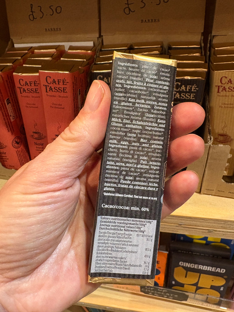 Delve into the world of Café-Tasse with their Noir 60% Dark Chocolate Bar – a 45 gram Belgian masterpiece. This intense, full-bodied, and pure cocoa butter dark chocolate, crafted from a blend of African and South American cocoa beans, encapsulates the essence of Café-Tasse's artistry. Share or savor it yourself, and experience the legacy of Belgian chocolate at Chocosphere.