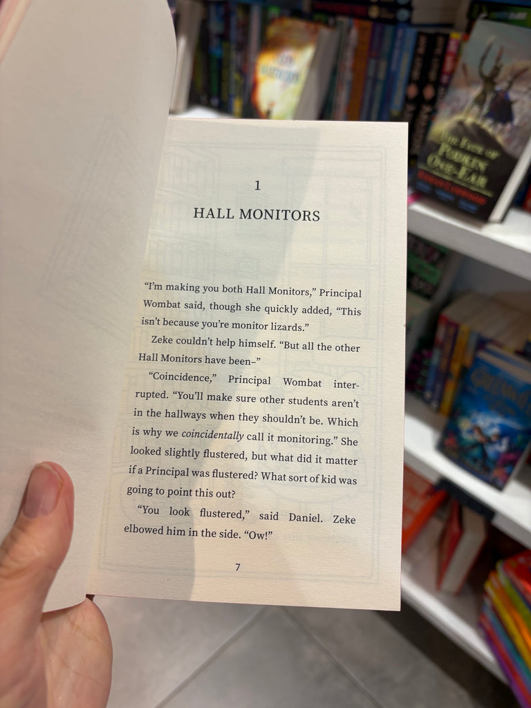 Patrick Ness. Master storyteller Patrick Ness turns to middle grade in a hilarious adventure about a mismatched group of animals attending school together, brought to life by brilliantly funny illustrations. Zeke and Daniel have just been made hall monitors by Principal Wombat. This has nothing to do with the fact that they are monitor lizards.