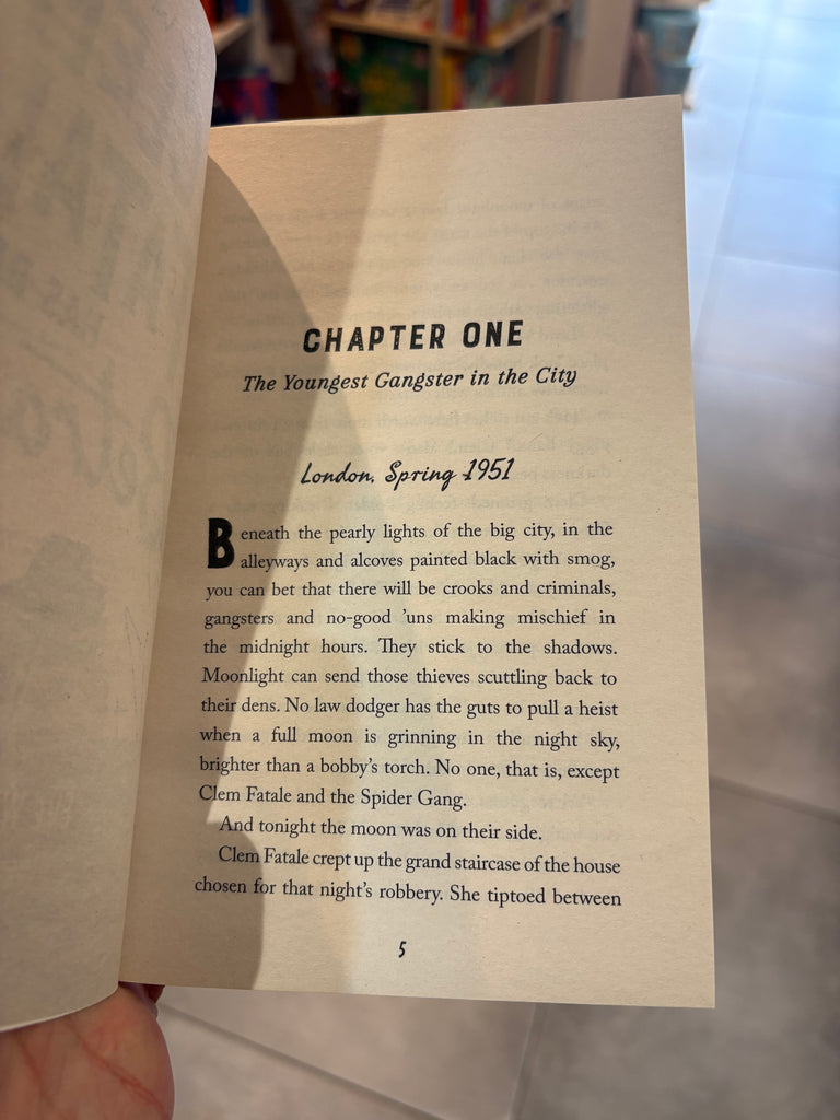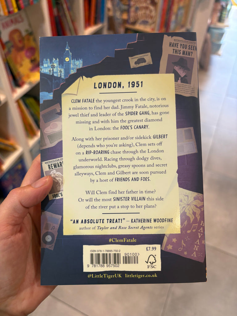 London, 1951: Clem Fatale, the youngest crook in the city, is on a mission to find her dad. Jimmy Fatale, notorious jewel thief and leader of the Spider Gang, has gone missing and with him the greatest prize in London: the Fool's Canary. Along with her prisoner and/or sidekick Gilbert (depends who you're asking), Clem sets off on a rip-roaring chase through the London underworld.