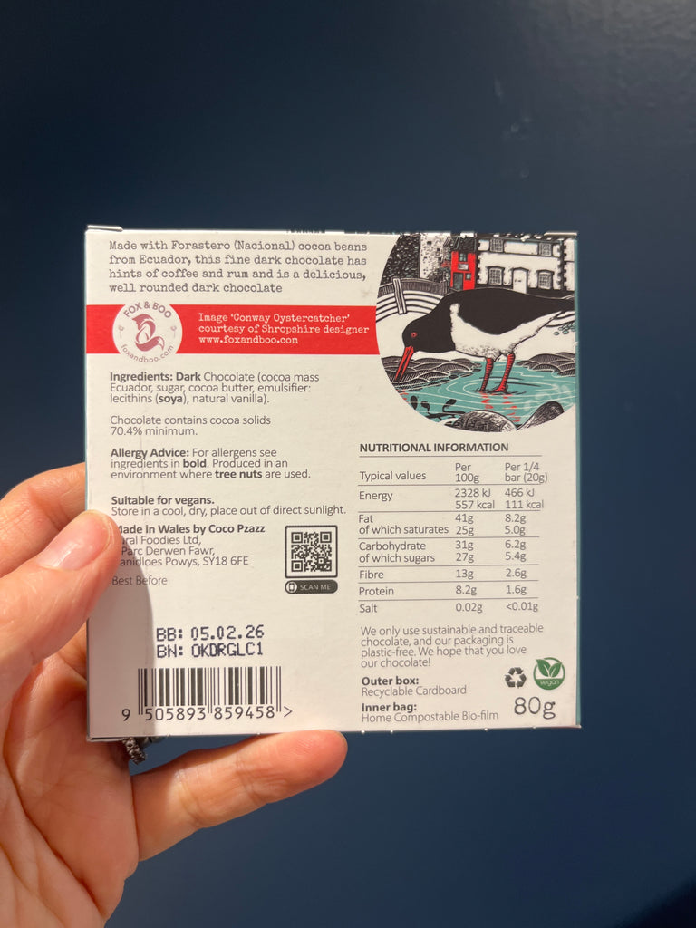 Coco Pzazz 70% Single Origin Ecuador Dark Chocolate Bar