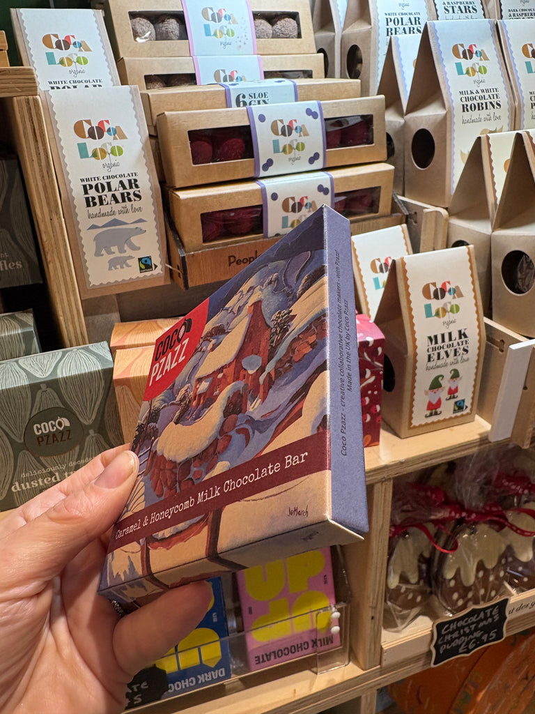 Beautifully designed by Jo March this white & milk chocolate blended with caramel & crunchy pieces of honeycomb.