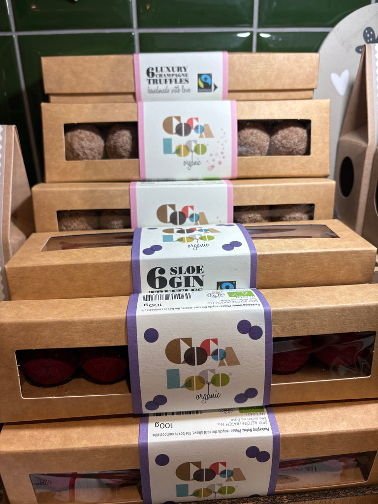 As always, our chocolate truffles are organic, Fairtrade certified, palm oil free and handmade with love from all of us in Sussex! The Milk Chocolate Champagne Truffles are now available in plastic free, compostable packaging! Hooray!
