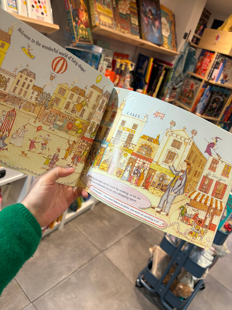 You can buy a cloak of invisibility or magic lamp, an umbrella that will transport you to the stars, eat flying fairy cakes at the Foxglove Restaurant, or join the fairies as they try on sparkly new dancing shoes and ball gowns and much much more. Familiar giants, fairies and witches will encourage children to find characters hidden in the illustrations. A beloved picture book, updated and modernised for a new generation.