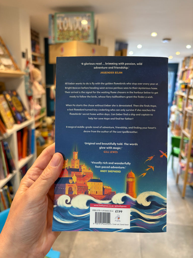 Julie Pike. All Ember wants is to fly with the golden flamebirds who stop every year at Bright Beacon before heading west across the seas to their mysterious home. Their fiery arrival is also the signal for the waiting Flame Chasers in the harbour below to prepare to follow the birds, whose glowing tail feathers grant the finder a wish. But when Pa tells Ember he is chasing without her, she is devastated.