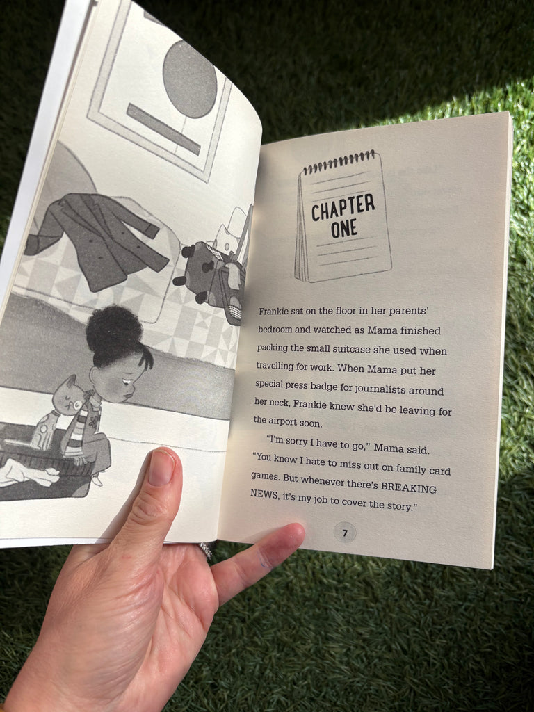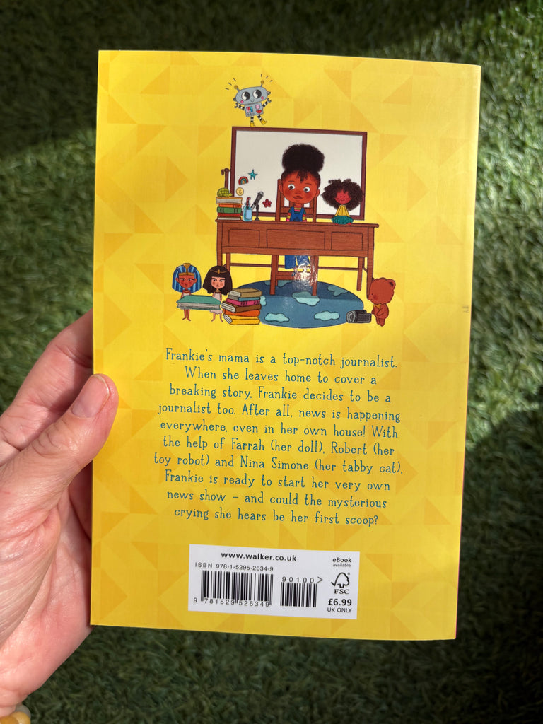 But Frankie has a great idea: she can make her own news show! After all, Mama has told her that news is happening around her all the time. With a little assistance from her friends – including her doll Farrah, Robert the toy robot, and her tabby cat, Nina Simone – Frankie prepares for her first “broadcast”. And when she hears someone crying in the house, she knows that’s the developing story she must cover.