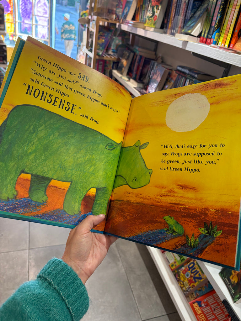 A heart-warming picture book about a green hippo who struggles with being different and the friends who help him accept his individuality, by award-winning author-illustrator, Petr Horácek. Green Hippo is feeling sad. Why? Because someone said green hippos don't exist! Frog, Elephant and Giraffe try to cheer him up, but Green Hippo is feeling too down to listen.