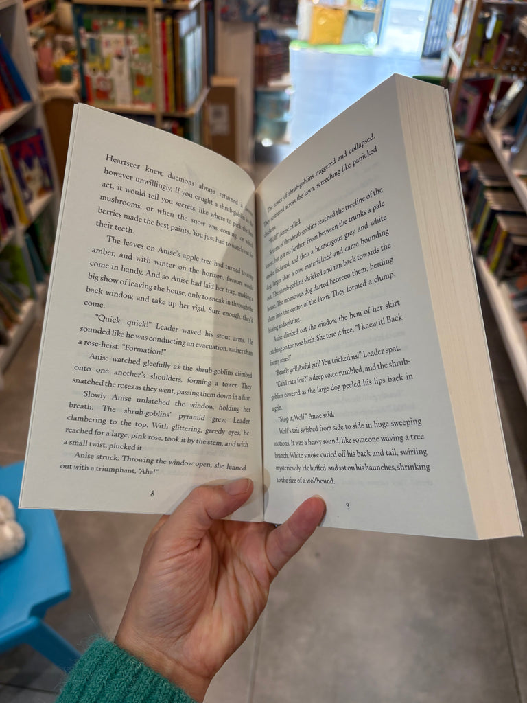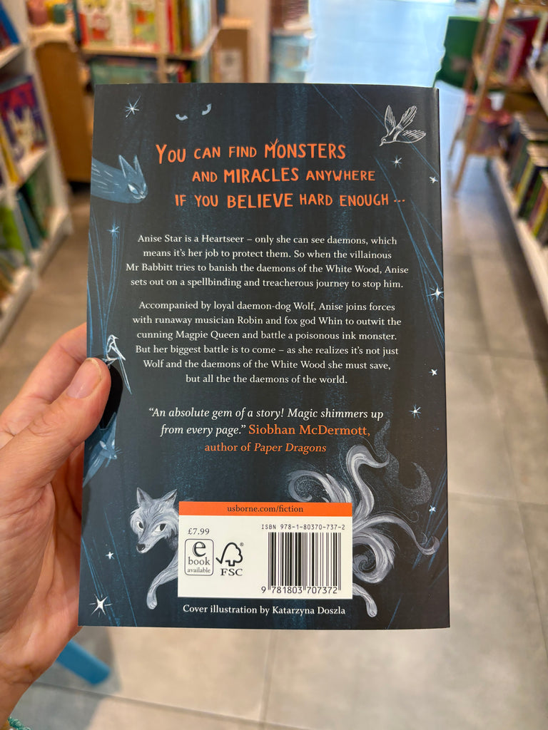 But when the villainous Mr Babbitt tries to steal her home in the White Woods and drive the daemons out, she is forced to travel to the capital to ask the High King for help. First, though, she'll have to convince him that daemons still exist. Accompanied by loyal daemon-dog Wolf, Anise sets out on a spellbinding and treacherous journey, meeting magical musician Robin and fox god Whin, and facing the cunning Magpie Queen and a deadly poisonous ink monster.