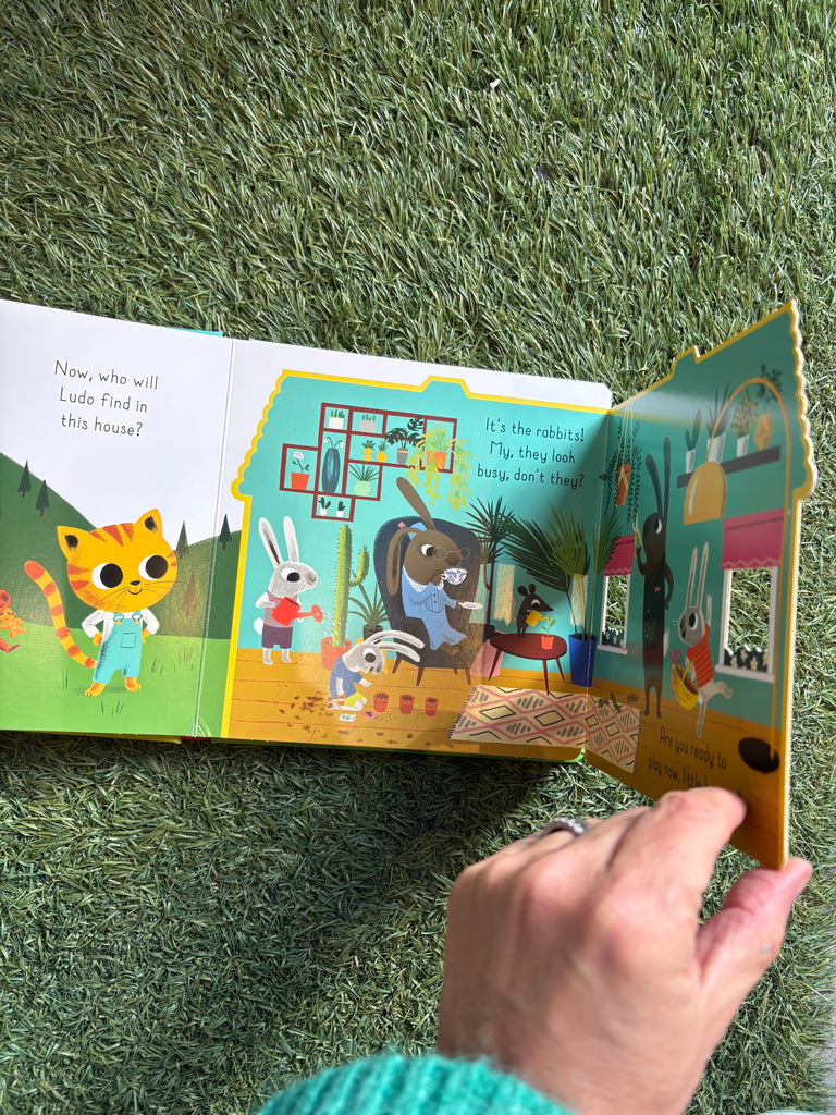 Big flaps on every page, holes to peek through, and a touch and feel ending make this a perfect book for inquisitive little hands!Ludo has come to the village today - can you help him find his friends? Knock on the doors to the different houses, then tickle Bruno's tummy to wake him up, so everyone can come and play outside with the big red ball!With gorgeous artwork from Nicola Slater, illustrator of The Leaf Thief, Jonathan the Magic Pony and Meekoo and the Big Red Potty. This is the perfect series for toddlers beginning to learn about the world around them! Join in Ludo's other adventures in: Hello Farm, Hello Garage, and Hello Zoo.