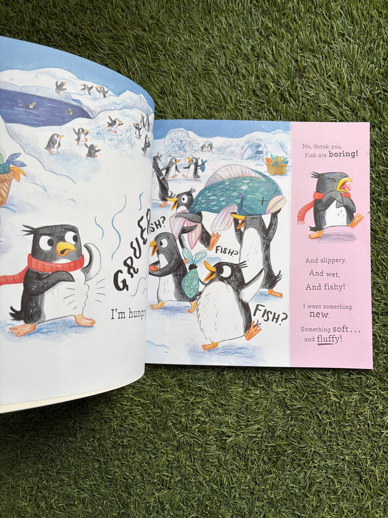 "I’m hungry! Fish are boring! I want something new. Something soft… and fluffy!"Meet a little penguin who is super hungry but totally bored of eating fish. An older penguin recalls hearing of a fluffy creature called a ‘bolar pear’, so the little penguin sets off on an adventurous mission to find and eat this ‘mystery’ creature.