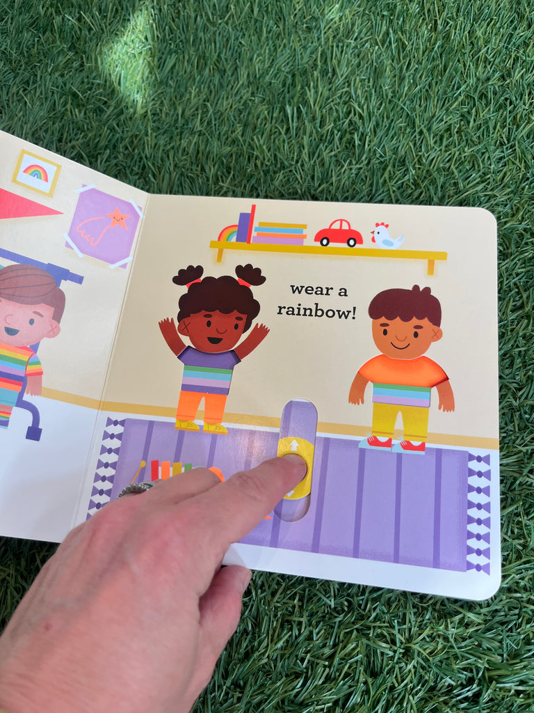 It's Pride and it's time to celebrate in this sing-along book with sliders! Bring this vibrant board book to life as the little children take part in four fun activities for Pride. Share a story, wear a rainbow, wave a flag and join a parade - with robust sliders that are easy for the tiniest hands to move and joyful neon artwork, this is the perfect book to share this Pride. Scan the Stories Aloud QR code on the back cover to sing along with the song!