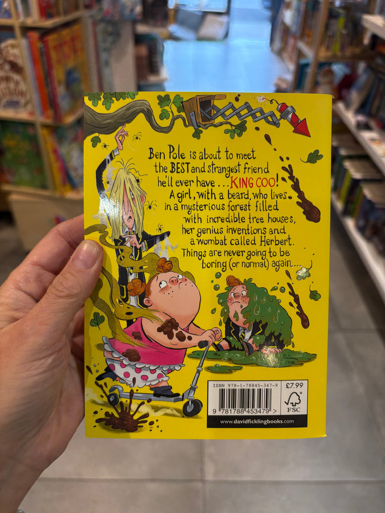 Adam Stower. Ben Pole is on the run from school bully Monty Grabbe, when he discovers an amazing secret wood. There's rope swings, water slides, a wombat called Herbert - and best of all, KING COO - a genius full of secrets, mysteries and incredible inventions. Ben, Herbert and King Coo will need all their wits about them to thwart Monty Grabbe's dastardly ways .