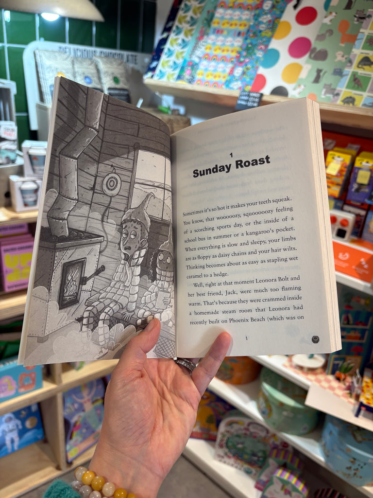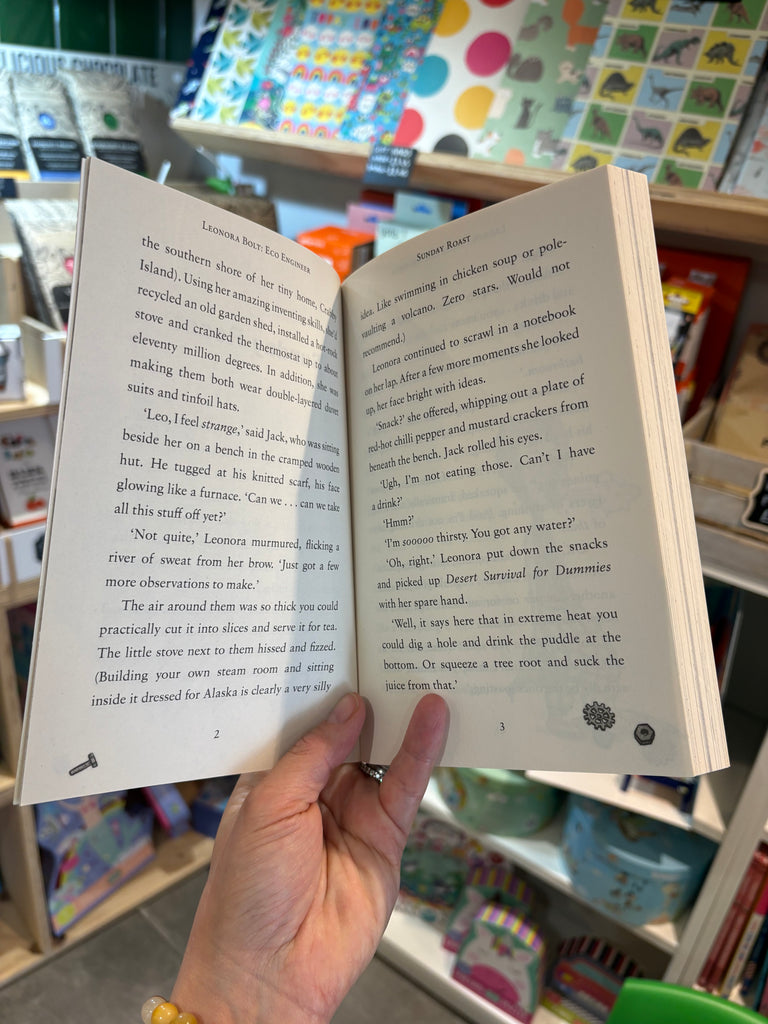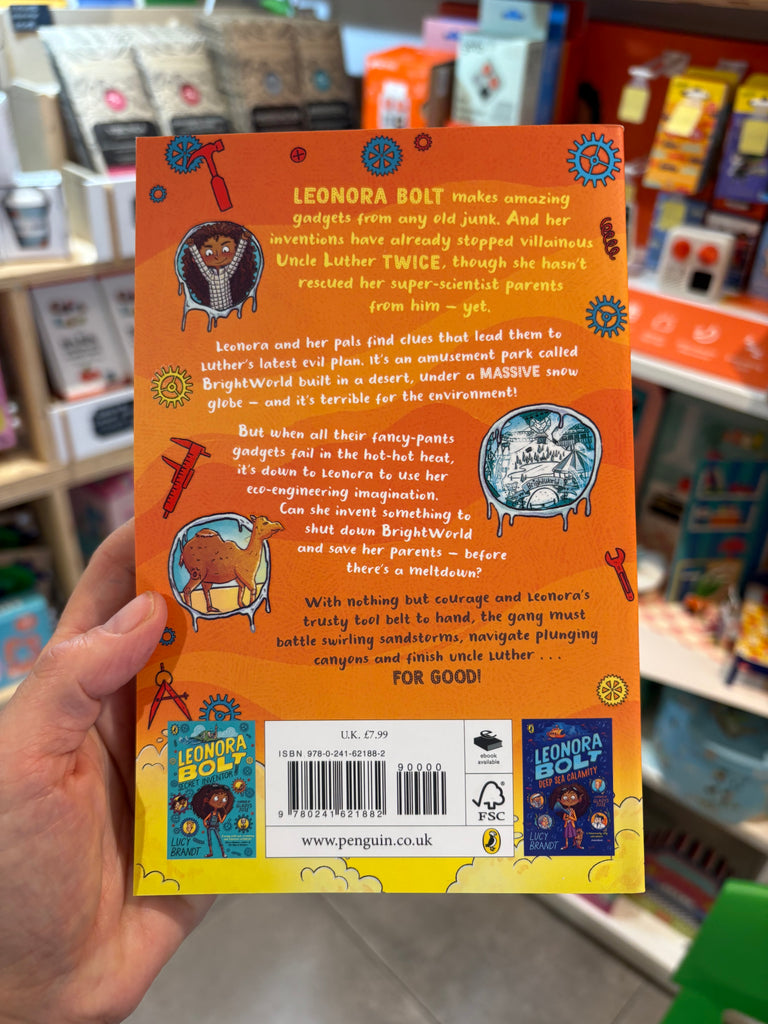 It's an amusement park called Brightworld built in a desert, under a massive snow globe - and it's terrible for the environment!But when all their fancy-pants gadgets fail in the hot-hot heat, it's down to Leonora to use her eco-engineering imagination. Can she invent something to shut down Brightworld and save her parents - before there's a meltdown?With nothing but courage and Leonora's trusty tool belt to hand, the gang must battle swirling sandstorms, navigate plunging canyons and finish Uncle Luther...FOD GOOD!