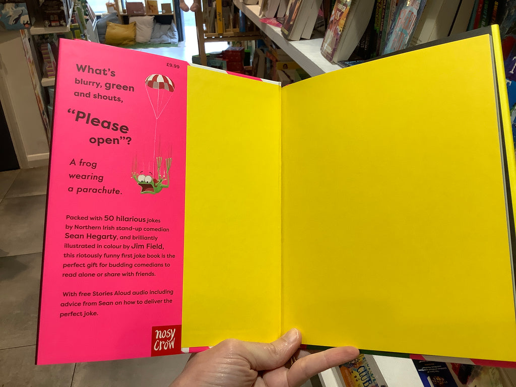 Sean Hegarty and Jim Field. Packed with 50 hilarious jokes by Northern Irish stand-up comedian Sean Hegarty, and brilliantly illustrated in colour by Jim Field, this riotously funny first joke book is the perfect gift for budding comedians to read alone or share with friends. Includes a FREE Nosy Crow Stories Aloud® audiobook! Scan the code, hear the story.