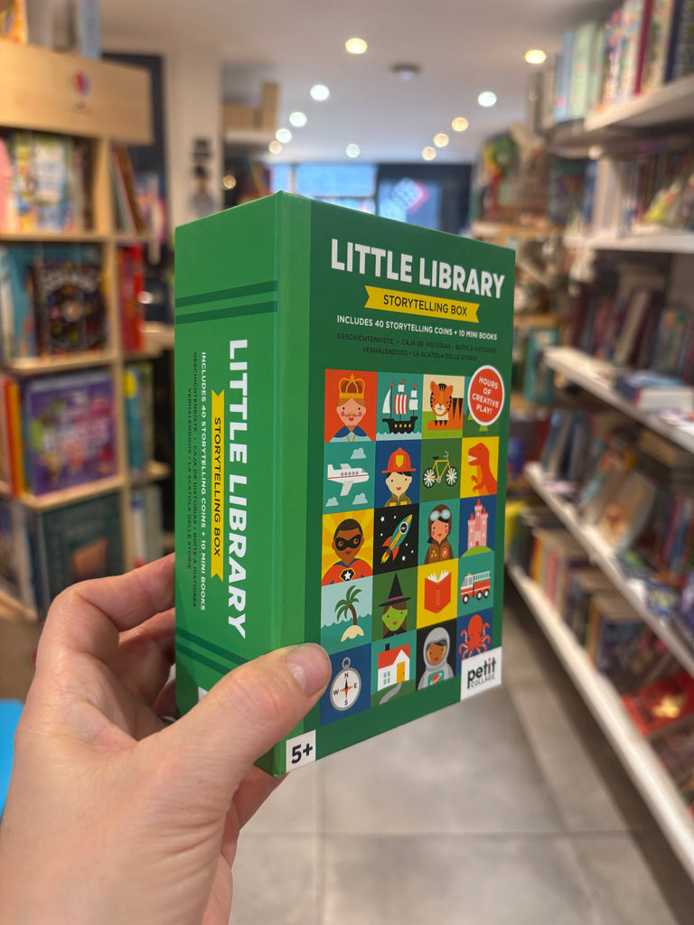 What fantastical stories will your child dream up with this Little Library Storytelling Box from Petit Collage? Maybe it'll be about an awesome astronaut or a brave cowboy? Or perhaps a daring aviator or a silly octopus? With 40 double-sided storytelling coins to inspire them, their imaginations will soar! Once their creative juices are flowing, they can draw or write their tales in the 10 mini blank notebooks! Packaged in a keepsake book box that opens to a library scene. Printed using vegetable inks on FSC paper. Suitable for 1-8 players. Ages 5+.