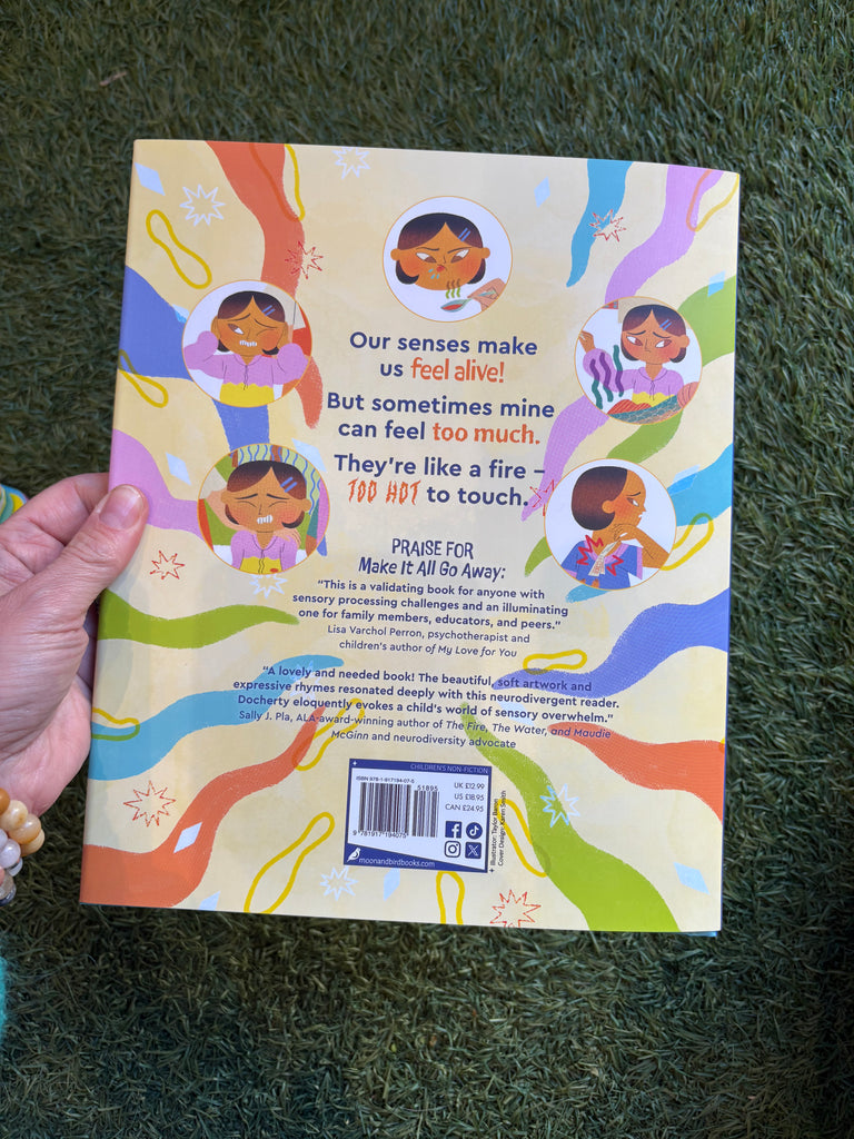 Join Melodie on a day out with her family as she gets overwhelmed with horrible smells, sights, sounds, tastes and textures. This is a heartwarming story that follows Melodie as she visits the pungent market, noisy public bathroom, overwhelming restaurant that serves mushy vegetables, too brightly-lit mall and more. As she gets progressively more overwhelmed and upset, join her as she taps her nose and moves in circles to calm herself down, before returning home and relaxing in her safe space. Inspired by the author's daughter's experiences of sensory overload, this gentle rhyming picture book explores what a child with sensory issues experiences.