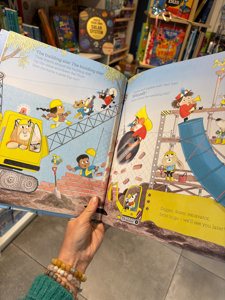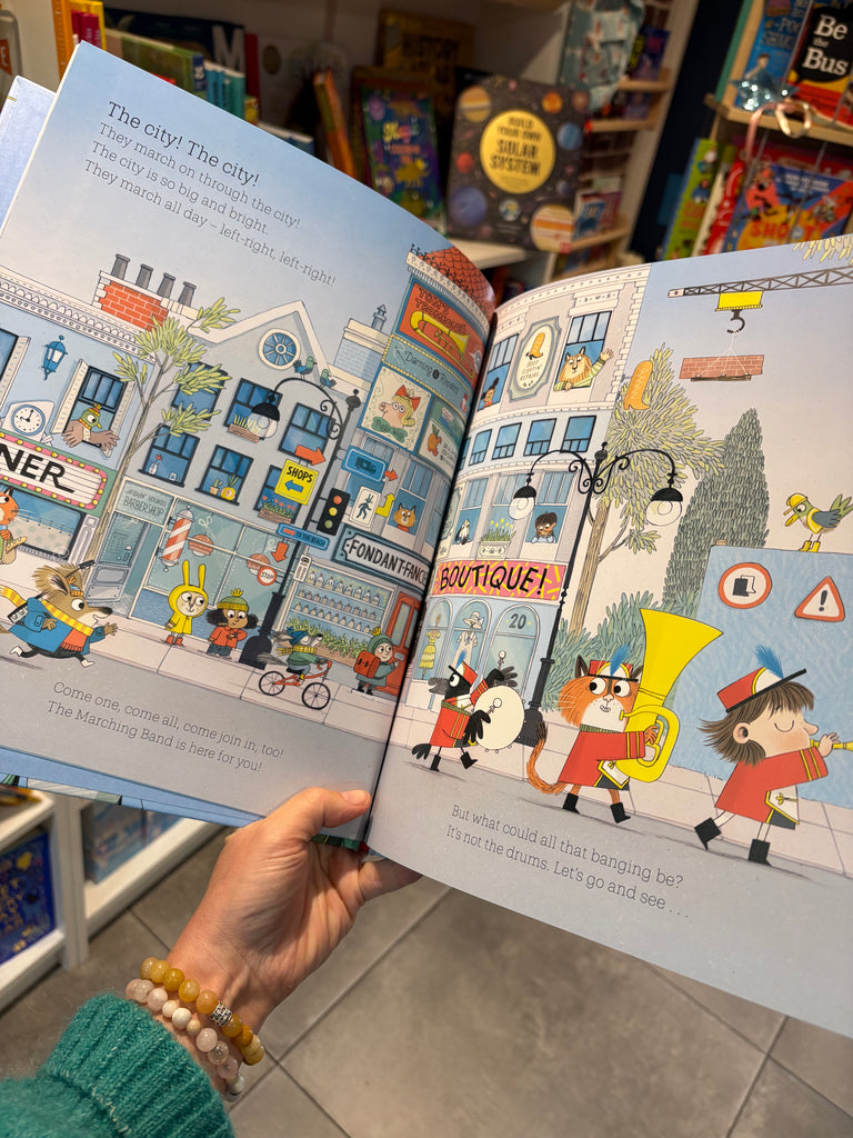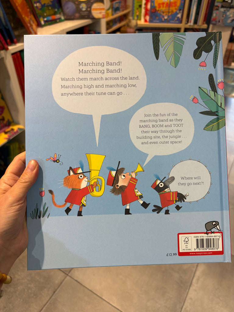 Funny detailed scenes including a building site, a beach, a jungle and outer space. Encourages counting skills - count all 10 members of the marching band!Get ready to stomp your feet and march along in time with the band, and have lots of adventures and laughs along the way!