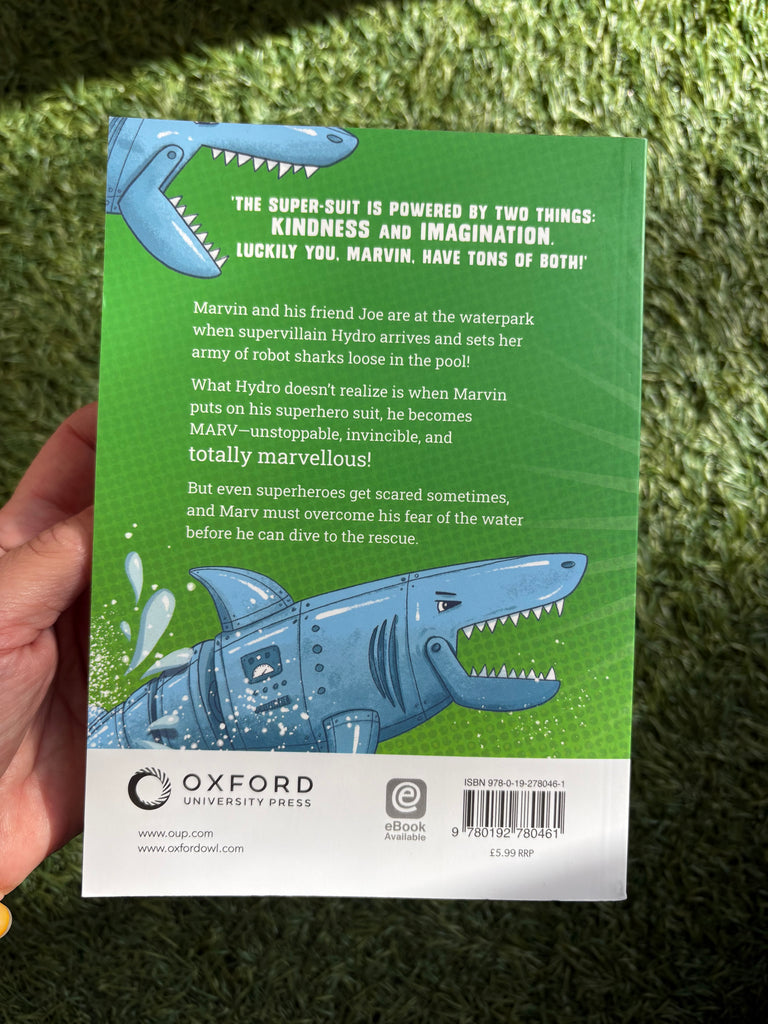 But, even as a hero, overcoming his fear of the water is going to be a challenge. Can Marv defeat supervillain Shadow and her army of robot sharks to save the day?