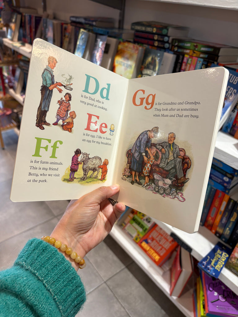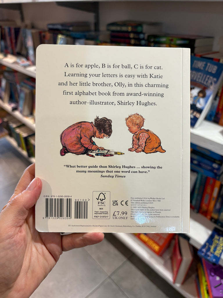 A charming board book about first letters and words for very young children from Shirley Hughes, one of the most-loved author–illustrators of children's books. Learning about the alphabet is fun and easy with Katie and her baby brother, Olly. Join them as they explore their friendly and familiar world and all it contains in this charming first ABC book.