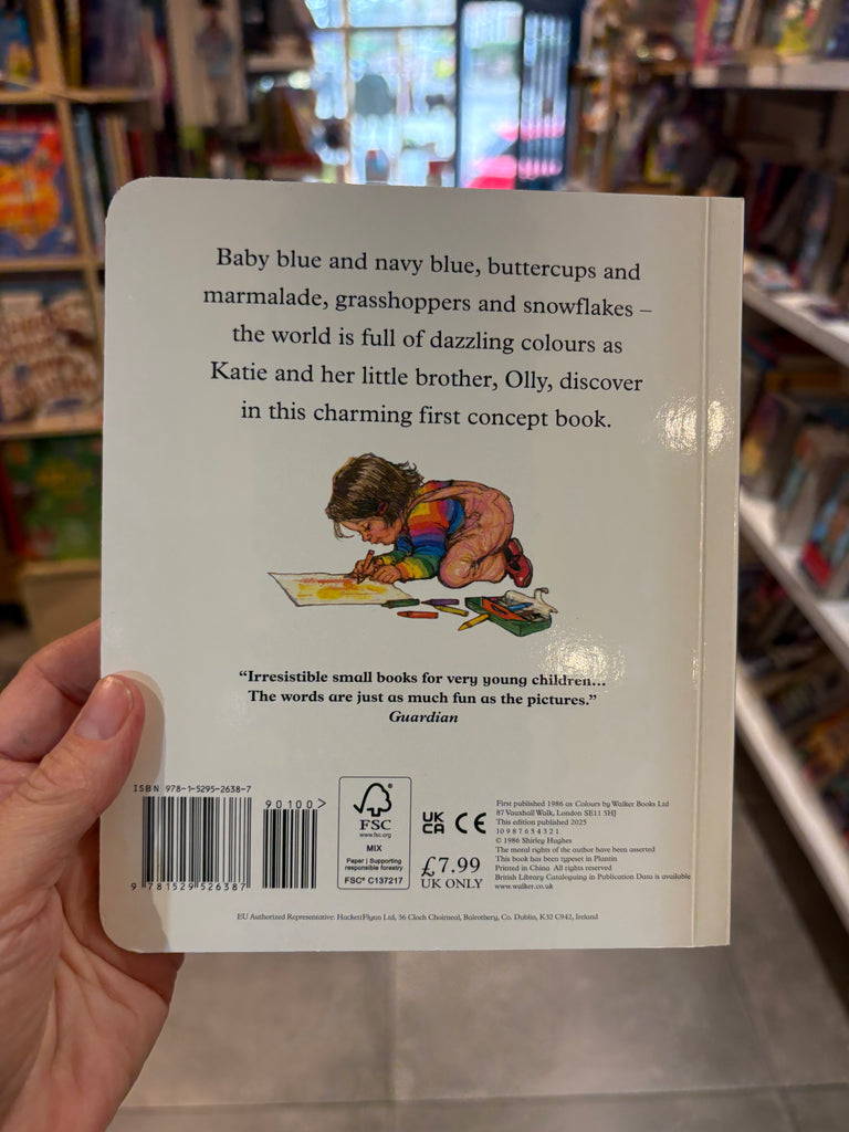 A delightful introduction to first colours from Shirley Hughes, one of the best-known and most-loved picture book creators. Learning your colours is fun and easy with Katie and her baby brother, Olly. Join them as they explore their friendly and familiar world and all it contains in this charming first look at colours.