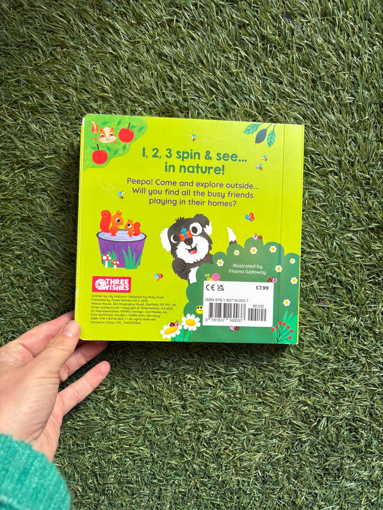 Come and explore outside to meet curious foxes, hopping frogs, busy beavers and all their friends in 1, 2, 3 Spin and See: Nature Detective.