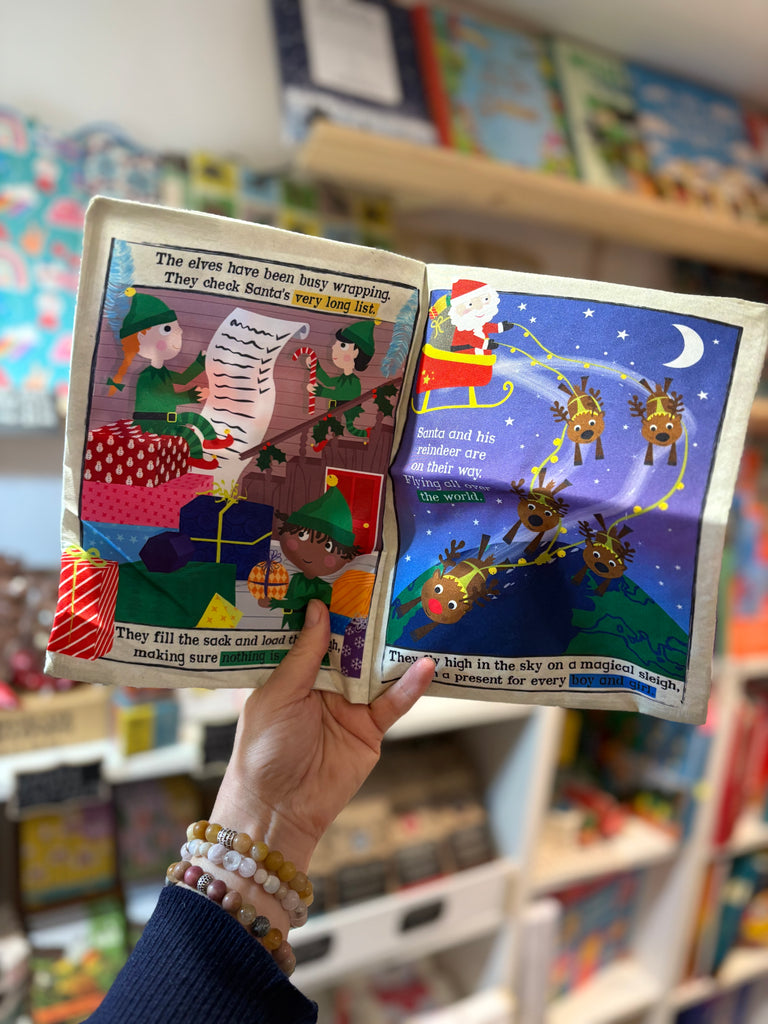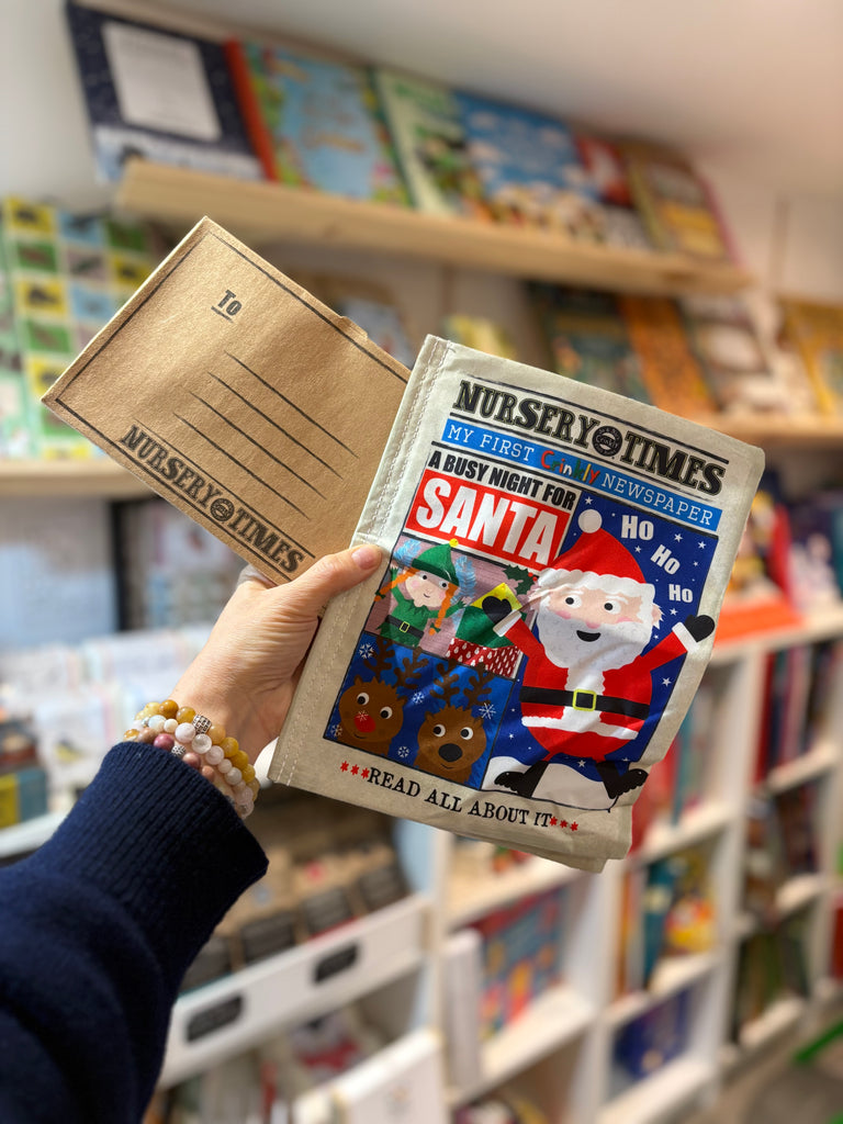 Read All About It! Nursery Times: A brilliant cloth book designed to look, feel and sound like a little crinkly newspaper. Soft, sensory, tactile, lightweight & practical. A unique gift for babies and toddlers, packed in a card envelope ready to send. This brand new Christmas title features 6 brightly illustrated pages all about Santa and his most important eve of the year. A perfect stocking filler.