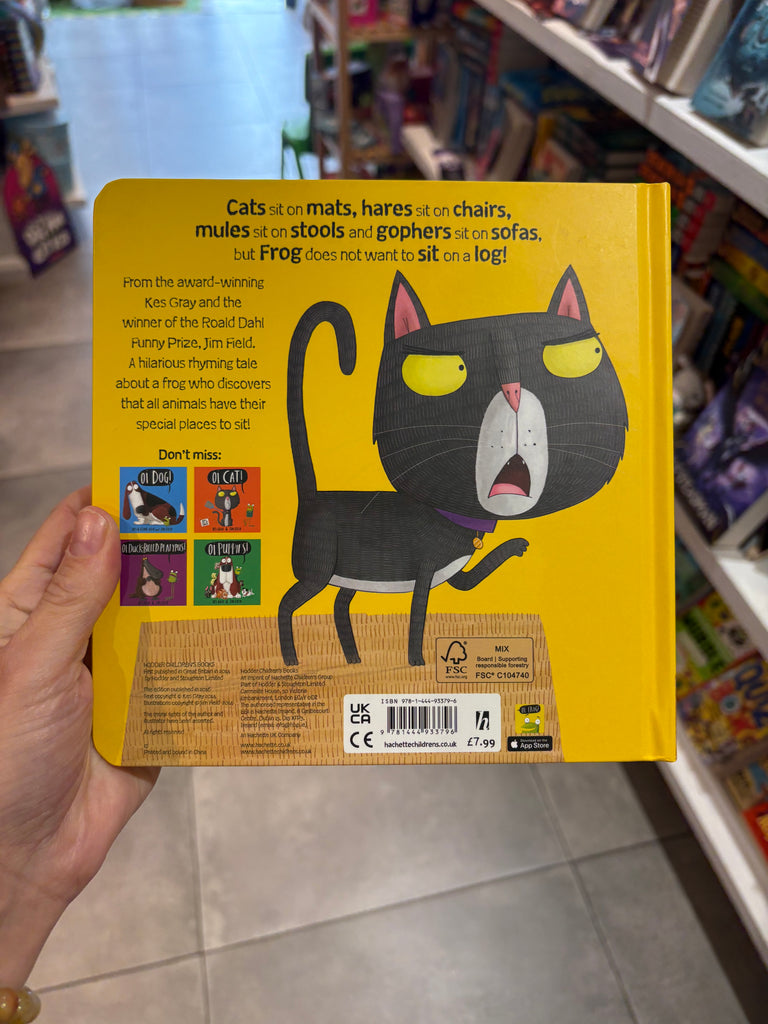 The board book edition of the bestselling rhyming story, jam-packed with the silliest of animals, will have the youngest of readers in fits of laughter.Cats sit on mats, hares sit on chairs, mules sit on stools and gofers sit on sofas, but Frog does not want to sit on a log! From the award-winning Kes Gray and the winner of the Roald Dahl Funny Prize, Jim Field, comes an hilarious rhyming tale about a frog who discovers that all animals have their special places to sit!Can't get enough? Look out for Oi Dog!, now available for purchase, and Oi Cat!, coming out autumn 2017.'An absolute treat.' - Daily Mail'Hilarious illustrations and rhymes which are easy to recite and join in. Everyone will love it.' - GuardianKes was voted by the Independent as one of the TOP TEN children's authors and he is the author of the award-winning Eat Your Peas and winner of the Red House Children's Book Award. Jim's first picture book Cats Ahoy! won the Roald Dahl Funny Prize.