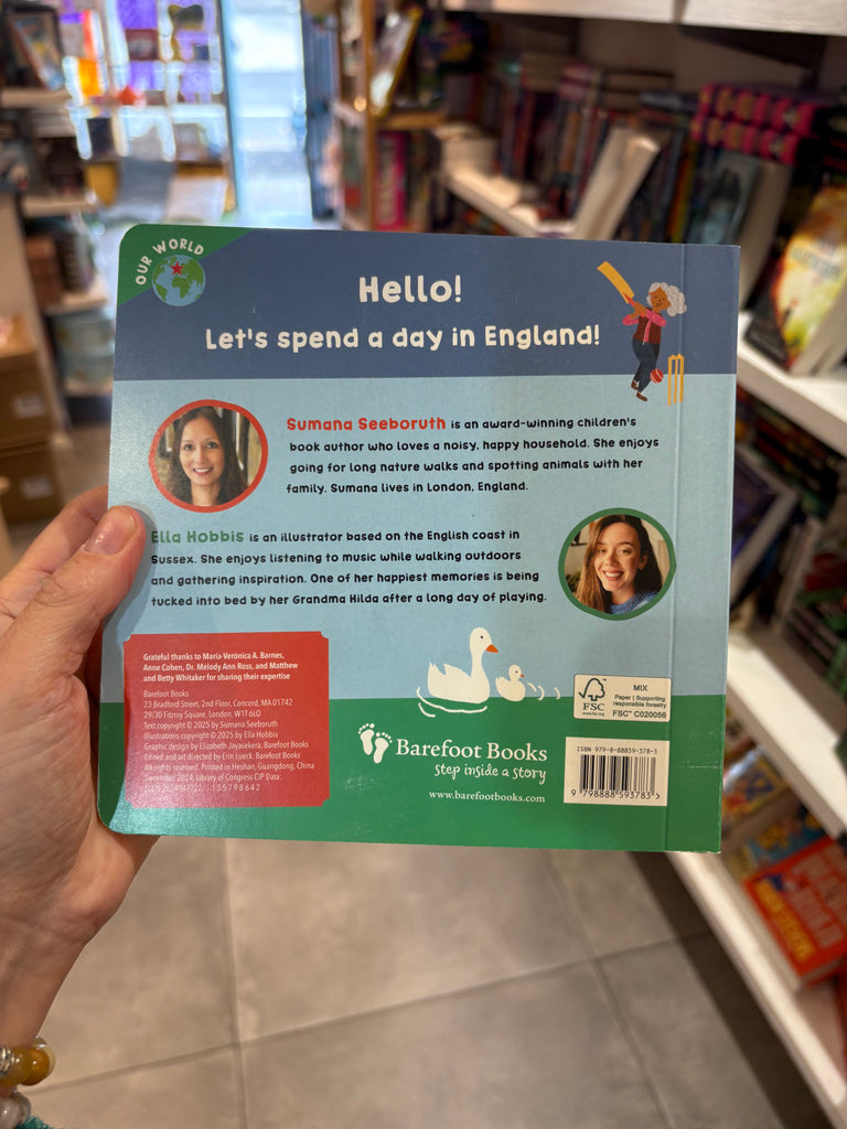Part of the Barefoot Books Our World seriesPart of the Barefoot Books America 250 collectionWritten by British author and illustrator Sumana Seeboruth and Ella HobbisExtended endmatter offers a further glimpse into life in England