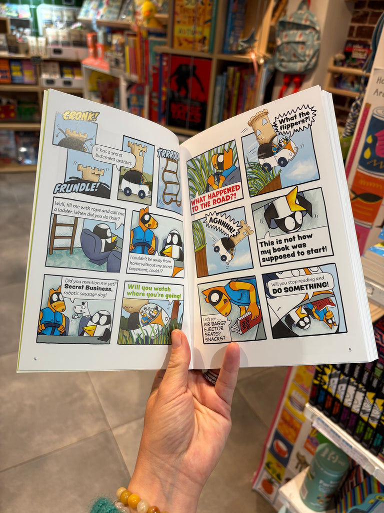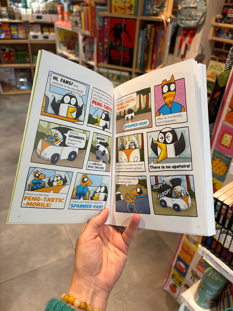 When everyone's favourite stately home becomes haunted by a terrible swamp monster (who seems to love kidnapping cows), Peng and Spanners are called in to investigate the swamp and unblock the mystery. Luckily the robot dog Secret Business is prepared to hang out in a miniature submarine and snoop on suspicious conversations between anyone who has an interest in causing mischief. Meanwhile Peng and Spanners interview suspects, debate everything, and try to get their hands on more pizza .