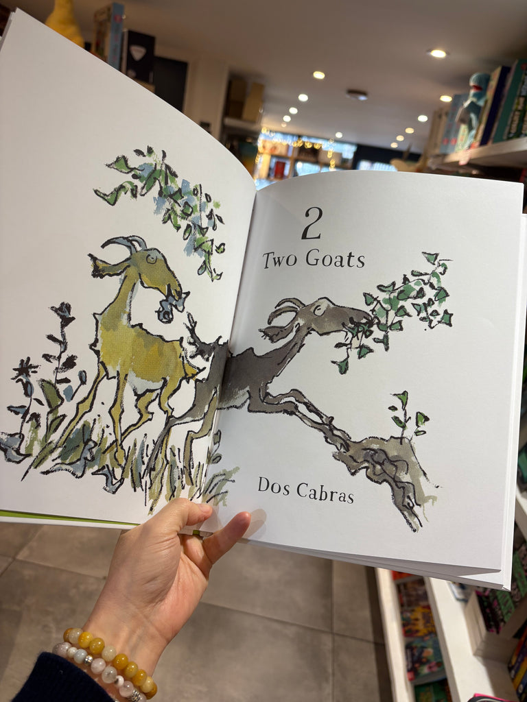 Count frogs and dogs, rats and cats, and more in this fun-filled numbers book, wonderfully illustrated by Quentin Blake. Join iconic illustrator Sir Quentin Blake for some counting fun in English and Spanish! Starting with one crow (un cuervo), count in English AND Spanish all the way up to ten frogs (diez ranas), watching as the pages fill up with unruly animals. But the fun doesn’t stop there… If you’re feeling brave enough, keep going to find one hundred wasps (cien avispas)! A great way for children to learn to count in English and Spanish, and a stunning book for Quentin Blake fans of all ages.