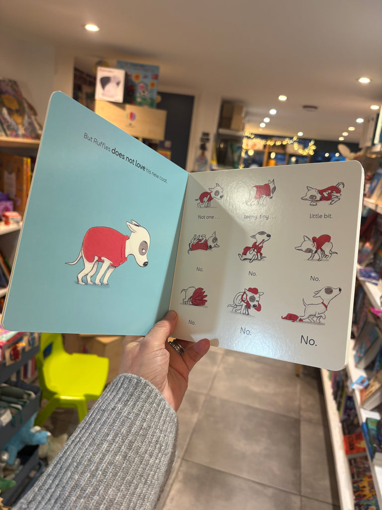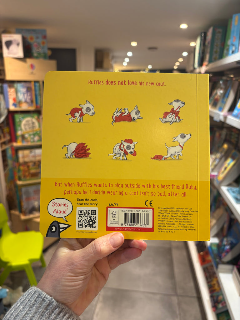 Ruffles LOVES scratching, digging and chewing but he does NOT like wearing his coat on rainy days. No, no, no, no, NO! But when Ruffles wants to splash in puddles with his best friend, Ruby, he soon learns that some things are definitely worth wearing your coat for!Dog-lovers won't be able to resist the adorable Ruffles in this preschool series from the creator of Hugless Douglas (over 5 million copies sold worldwide). Now in sturdy board book format - perfect for little hands! Includes a FREE Nosy Crow Stories Aloud® audiobook! Scan the code, hear the story.