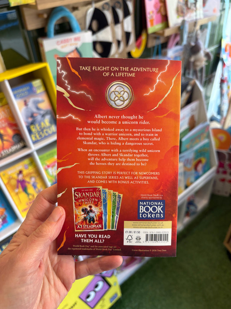 TAKE FLIGHT ON THE ADVENTURE OF A LIFETIME. A thrilling special adventure for World Book Day, from the no.1 bestselling author of the Skandar series. Albert never thought he would become a unicorn rider. But then he is whisked away to a mysterious island to bond with a warrior unicorn, and to train in elemental magic.