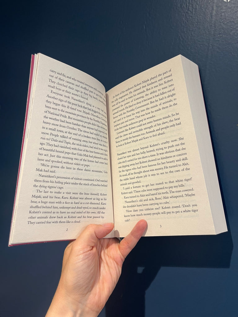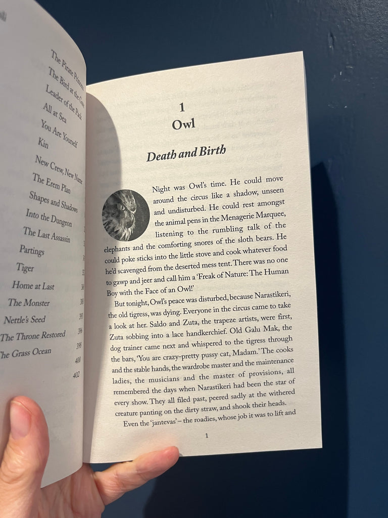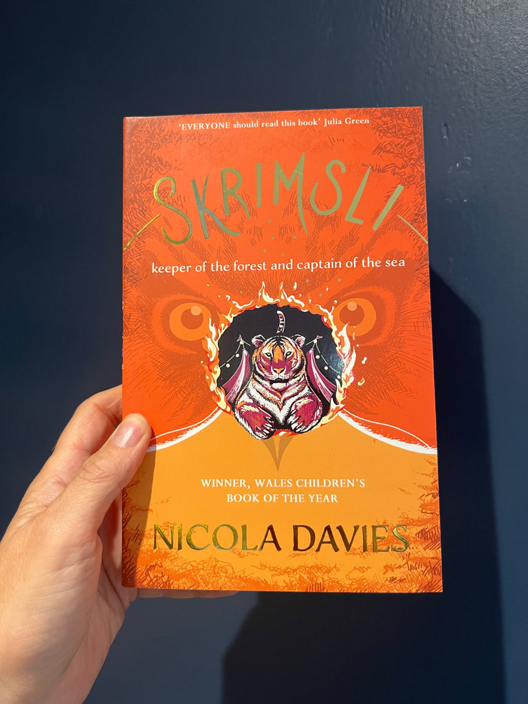 Nicola Davies. Who you are if you've never seen another face like yours? Where do you belong if you don't know where your home is? What do you call yourself when others call you 'freak'? How can you be brave when you are full of fear? Why would you choose purpose over love? Skrimsli is the second fantasy adventure from author Nicola Davies set in a world where animals and humans can sometimes share their thoughts. It traces the early life of Skrimsli, the tiger sea captain who stole readers' hearts in The Song that Sings Us. He and his friends, Owl and Kal, must escape the clutches of the tyrannical circus owner Kobret Majak, and his twin assassin-acrobats, then stop a war and save the ancient forest, where the Tiger, and the Owl are sacred guardians. Skrimsli and his friends are helped by the Palatine, desert princess and her eagle, a chihuahua who thinks she's a wolf, a horse with heart of gold and the crew of a very unusual ship. This is a story full of excitement and danger, that explores themes of friendship, loyalty, identity and love, in the context of some of humanity's toughest problems.