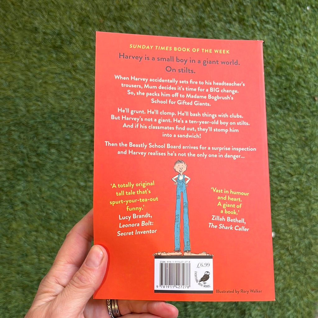 Harvey is a small boy in a giant world. On stilts! When Harvey accidentally sets fire to his headteacher's trousers, Mum decides it's time for a BIG change and packs him off to Madame Bogbrush's School for Gifted Giants.But Harvey's not a giant. He's a boy on stilts.