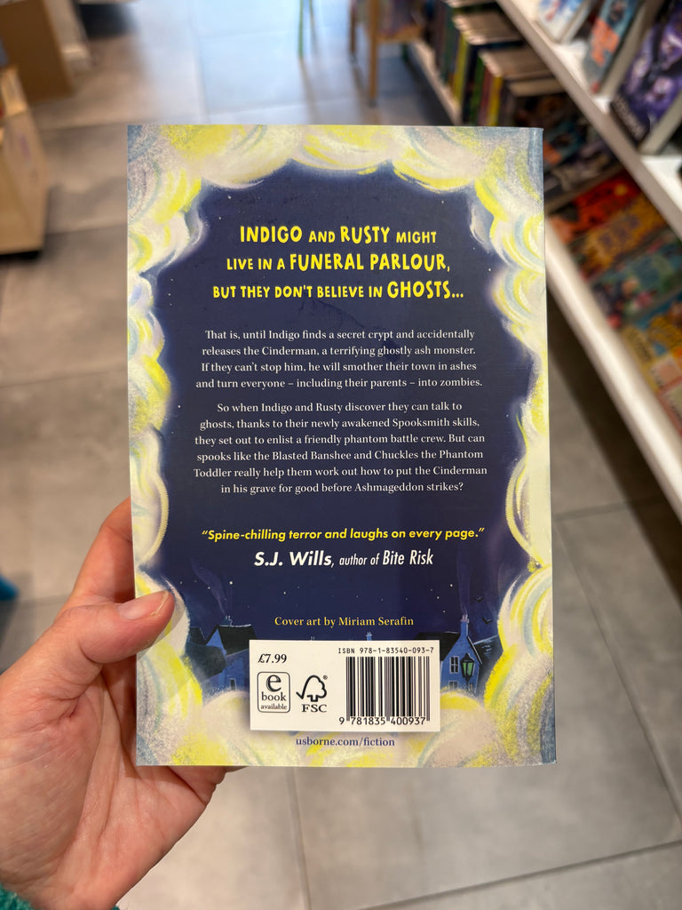 That is, until Indigo drops an old urn, accidentally releasing the Cinderman: a terrifying ash monster, who will smother their town in ashes and turn everyone into zombies, unless they can stop him by sunset. Using their newly awakened Spooksmith skills, Indigo and Rusty set out to enlist the help of other ghosts. But can the Blasted Banshee and Chuckles the Phantom Toddler really help them find the Cinderman's true name and put him in his grave for good before Ashmageddon strikes?