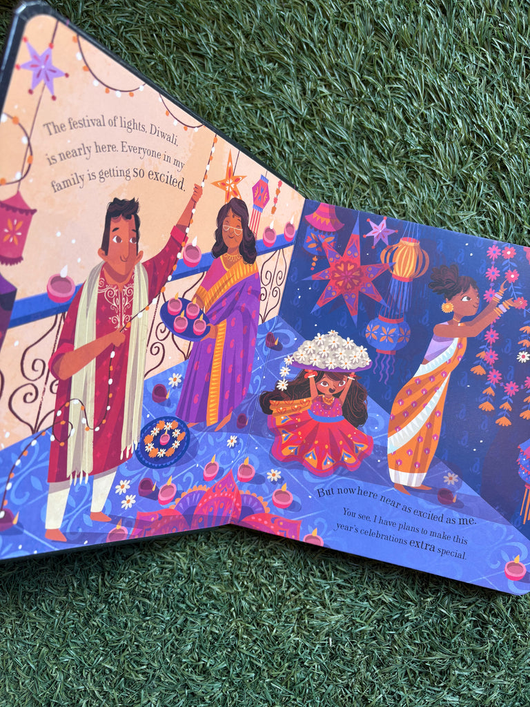 Peek into the magic of Diwali in this heart-warming board book about Diwali, siblings and how very special this celebration can be. This year, Ariana has plans to make Diwali an extra special celebration, with yummy sweets, divas around the house, pretty clothes, fireworks and... the rangoli competition, of course.