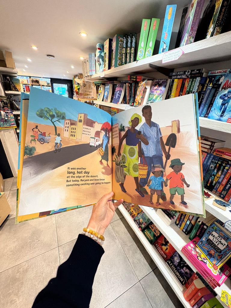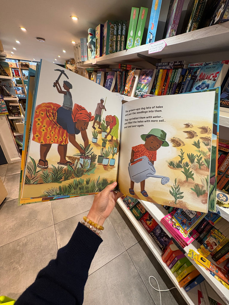 One hot day at the edge of the desert, Maryam and Issa know something exciting is going to happen. Mum and Dad bring spades, Uncle Cedric brings lots of plants and seedlings, the neighbours bring water. Everyone works together, digging, planting and watering – and the children all help too.