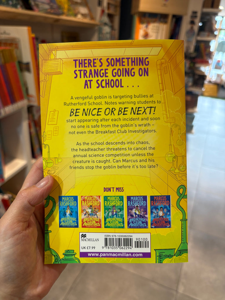 Join Marcus and friends as they solve another mystery in The Breakfast Club Adventures: The Goblin's Revenge. This spooky adventure is the sixth exciting book in the series by England International footballer and bestselling author Marcus Rashford MBE. Inspired by Marcus's own experiences growing up!A vengeful goblin is targeting bullies at Rutherford School.