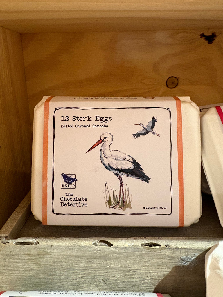 12 Chocolate Eggs filled with Salted Caramel. Layers of dark and milk chocolate are then filled with ganache and gently salted caramel before being wrapped in a fine sugar shell and life-like speckles.