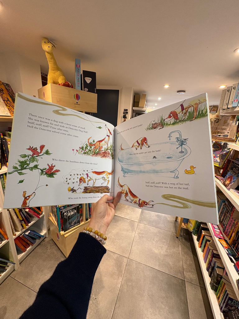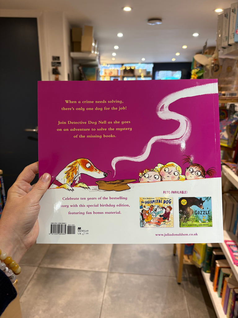 Help Nell the detective dog solve the mystery of the missing books with this special tenth anniversary edition of the bestselling rhyming picture book The Detective Dog from the creators of Gozzle. Written by Julia Donaldson, author of The Gruffalo, and illustrated by the multi-talented illustrator Sara Ogilvie, The Detective Dog 10th Anniversary Edition has a shiny gold foiled cover and includes a letter from the author and a sneak peek inside the illustrator's sketchbook. One day Peter and his dog Nell arrive at school to find all the books have disappeared from the classroom! Who could have taken them, and why? Luckily, Detective Dog Nell, with help from the whole class, is ready to sniff out the thief!This rhyming adventure is a celebration of reading, libraries and the relationship between a little boy and his rather special dog.