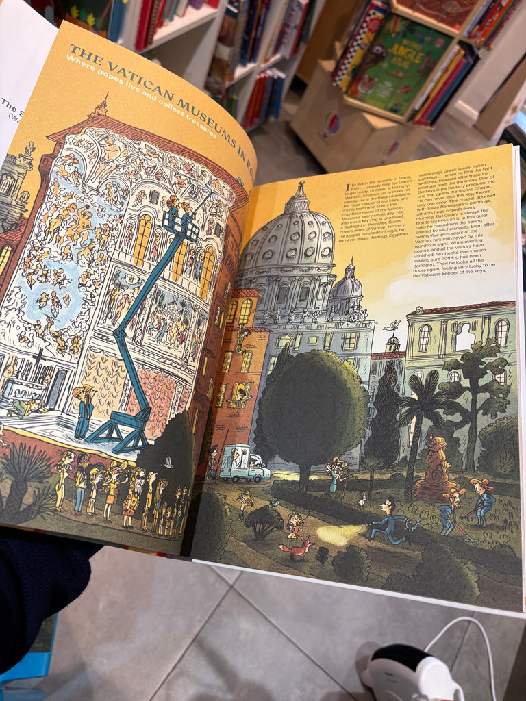 From Bilbao to Beijing, from New York to the Netherlands, explore the wonders of 13 extraordinary museums in this “great big” oversized book for readers 8 to 108. Whether you’re visiting Mexico City’s Frida Kahlo Museum, Paris’s treasured Louvre, or New York City’s American Museum of Natural History, you’ll be accompanied by the very best guides: curators, architects, landscape designers, artists . . . but also some more unexpected guests, like the beloved cats of St. Petersburg’s Hermitage, or the guardian of Rome’s Vatican Museums who carries hundreds of keys while making his rounds through the Sistine Chapel and beyond!