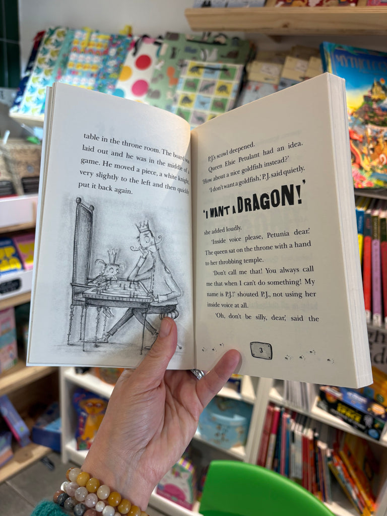PJ is going with him and so is a dragon who is called Sandra (even though he's a boy). And htere are bits about marzipan and secret tights and jokes and tricks and lots of FANTASTIC Stuff and Things.