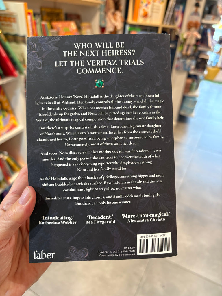 Who will be the next heiress? Let the Veritaz trials commence. The bestselling Rebel of the Sands author is back with a glittering fantasy thriller duology, featuring a family obsessed with money, power, fame - and magic. 'Sparkling .