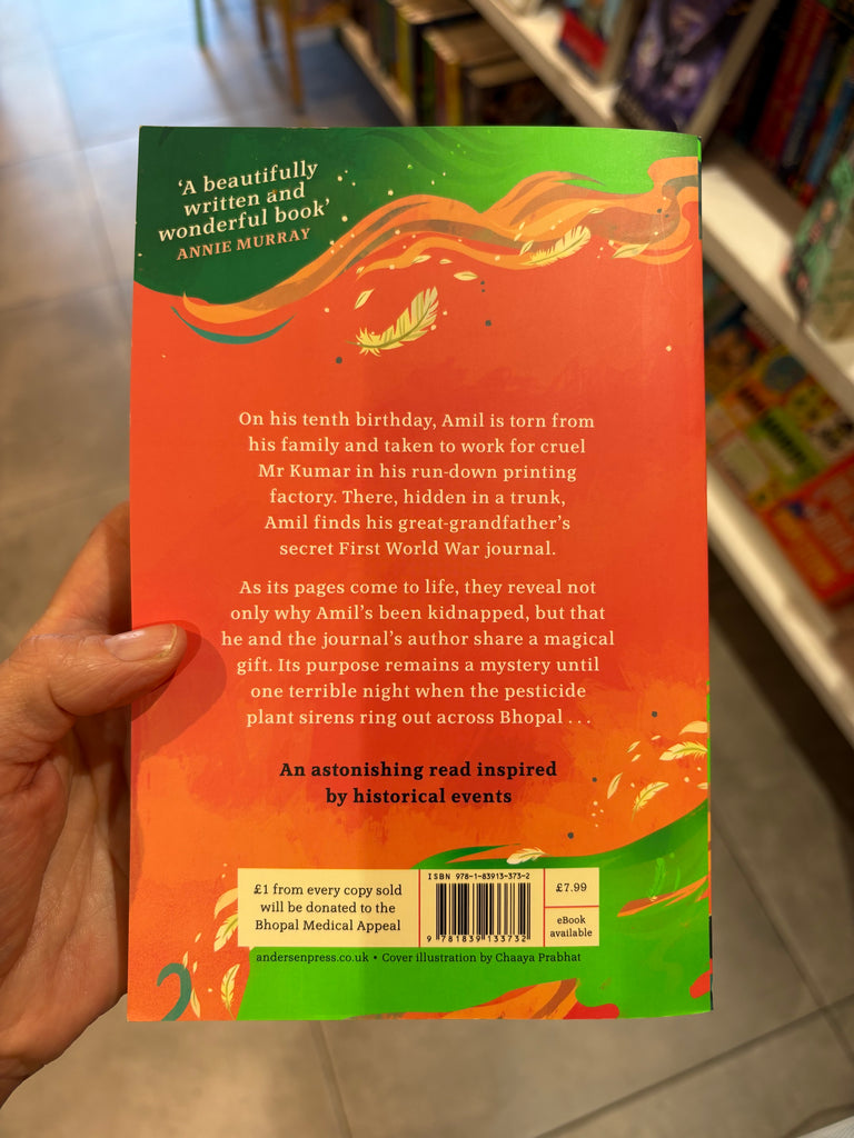 Tim Walker. Amil has always dreamed of working at the modern, space-age pesticide plant in Bhopal, India, where he lives. Instead, on his tenth birthday, he is torn from his family and taken to work for Mr Kumar and his cruel son, Jalesh, in their dilapidated printing factory. There, hidden in a trunk, he finds a secret First World War journal.