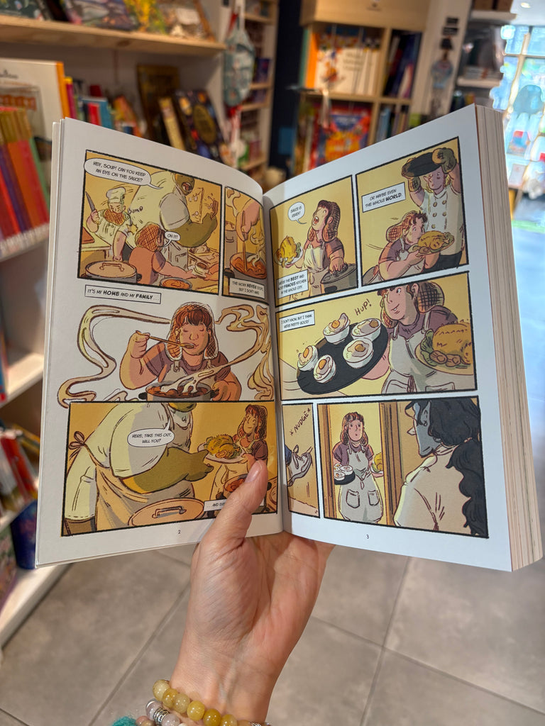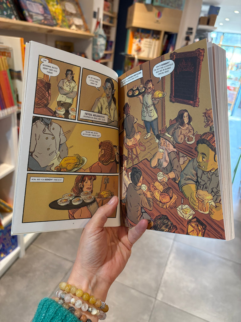 Heartstopper meets Nimona meets Legends & Lattes in this stunning graphic novel where Soup must battle her evil boss in a fantastical cooking competition. At seventeen, Soup is at a crossroads, eager to make her mark on the world, yet reluctant to leave the restaurant she calls home. The last thing on her to-do list is to overthrow the patriarchy, but when her elven boss snaps at her she begins to see his pattern of abuse, starting in the kitchen.