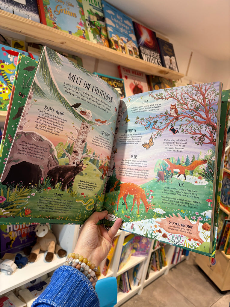 Join Bud the bear, as he embarks on a magnificent journey through the seasons of the Wild Wood. Along the way, he'll see flowers bloom, birds migrate, snow fall in soft flurries, spiders weaving webs, tadpoles transforming into frogs, caterpillars becoming colourful butterflies and much more. Seasonal checklists appear at the end of every chapter, so little adventurers can discover and tick off many magnificent spectacles in Spring, Summer, Autumn and Winter, including animal footprints, nests, beetles, birds and beyond! For the eagle-eyed there are six rare woodland creatures to find hidden in the pages.